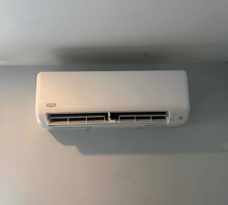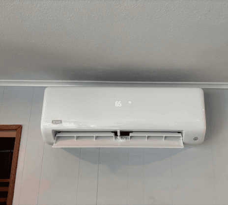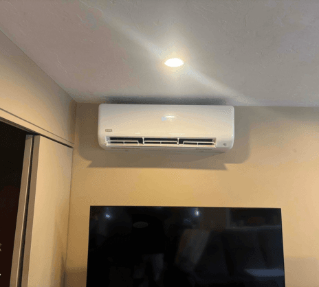 Living Room: A separate wall-mounted ductless indoor unit was installed on the living room’s right interior wall to condition the living area, providing accurate cooling and heating to the space.