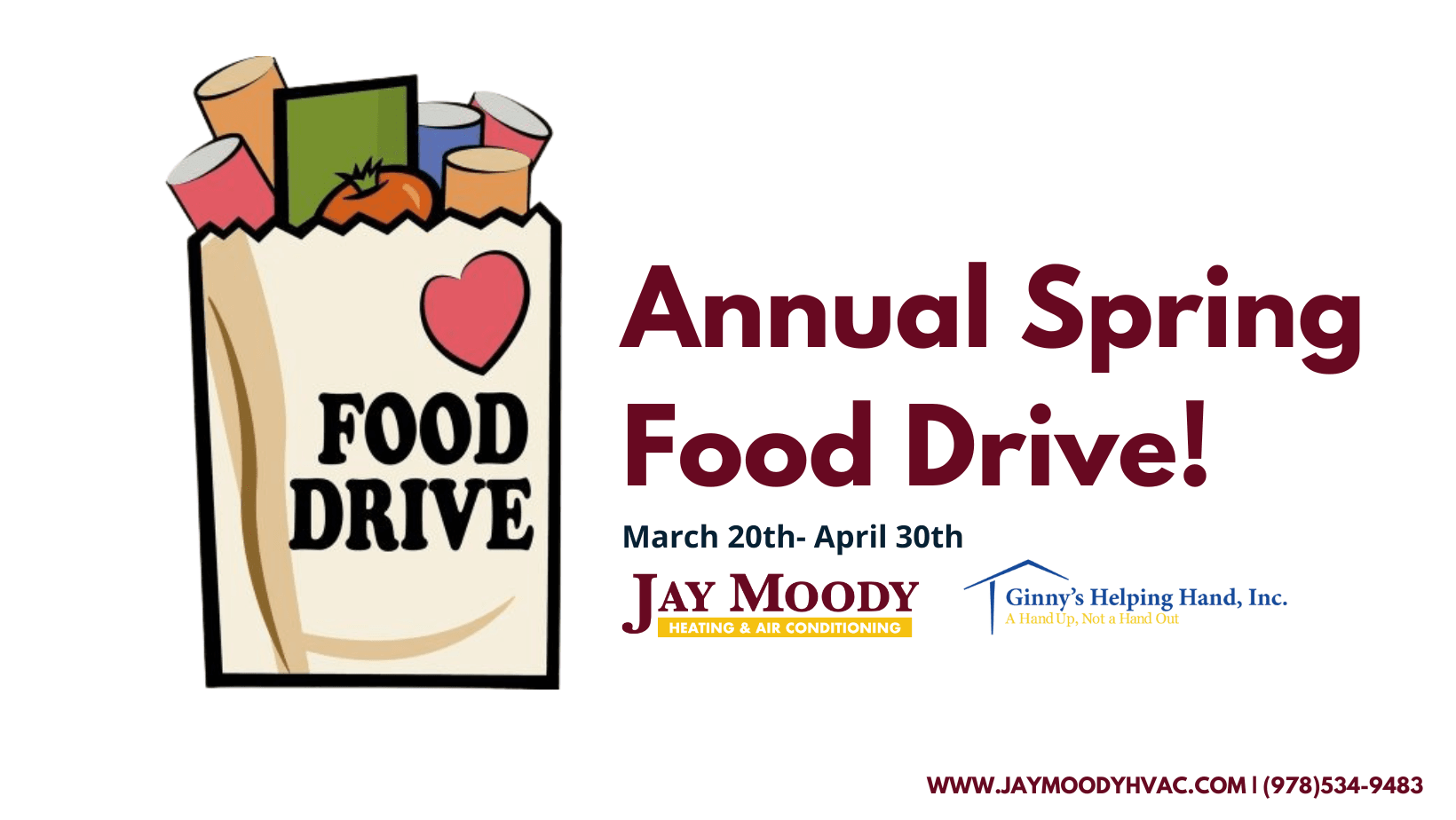 We are thrilled to announce Jay Moody HVAC’s first annual, Spring Food Drive! Our team is partnering with Ginny’s Helping Hand March 20th- April 30th to collect non-perishable food items. Our ongoing partnership with Ginny’s
